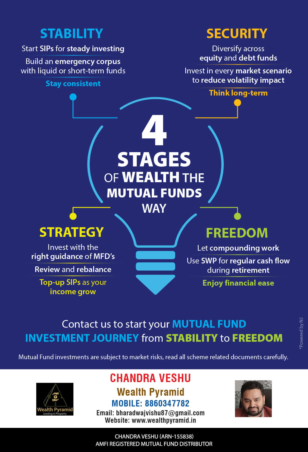 We at Wealth Pyramid incorporated in the 2016, with 2200+ satisfied customers, we are driven by our strong passion to ensure the financial well-being of all our customers. We will help you achieve your financial objectives with the right asset class and product exposure, all stitched together smartly by our experienced and highly qualified team.